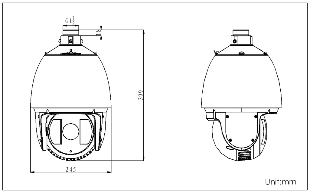 ? 內(nèi)置熱處理裝置,降低球機(jī)內(nèi)腔溫度,防止球機(jī)內(nèi)罩起霧